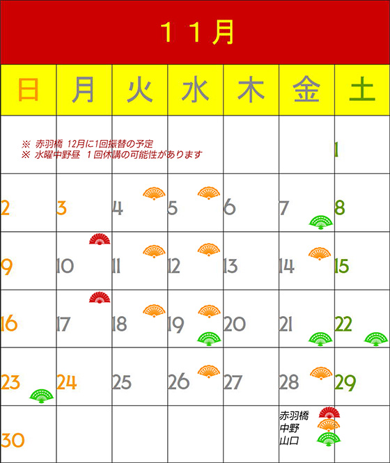 クラス | 中野 | 赤羽橋 | 山口 | 内 容 |